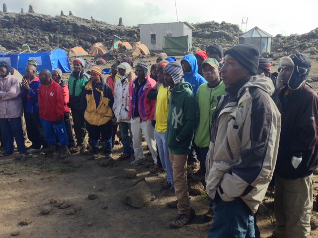 This morning our crew sang some traditional Kilimanjaro songs, which were appreciated by the team.
